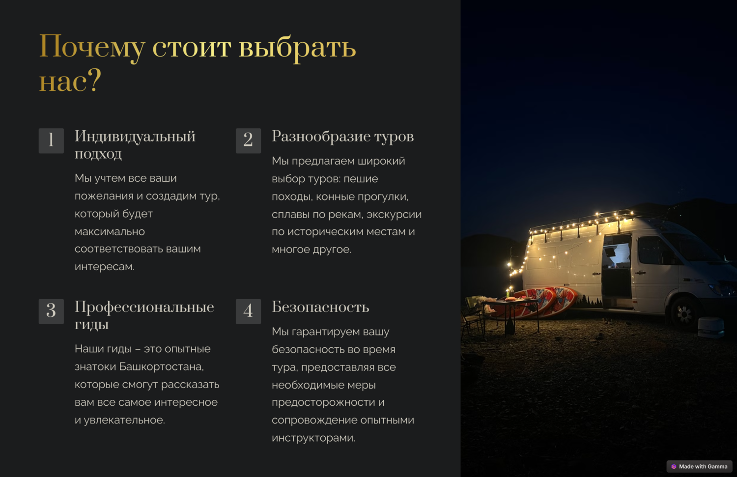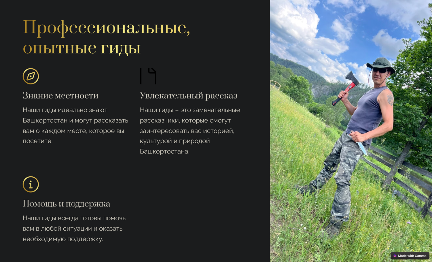 Привет! Меня зовут Ильшат и я основатель компании,занимающейся организацией уникальных и запоминающихся туров по самым живописным местам Южного Урала.